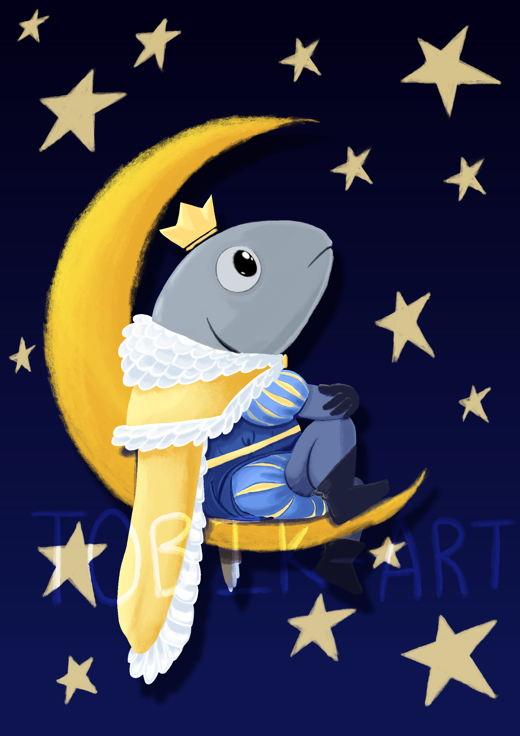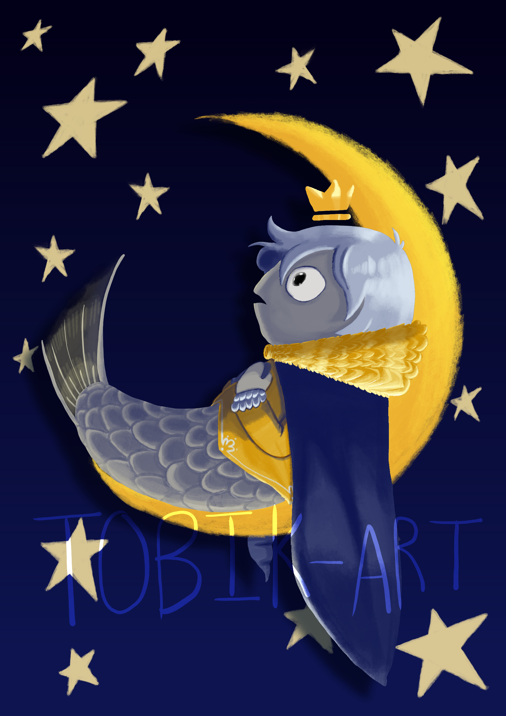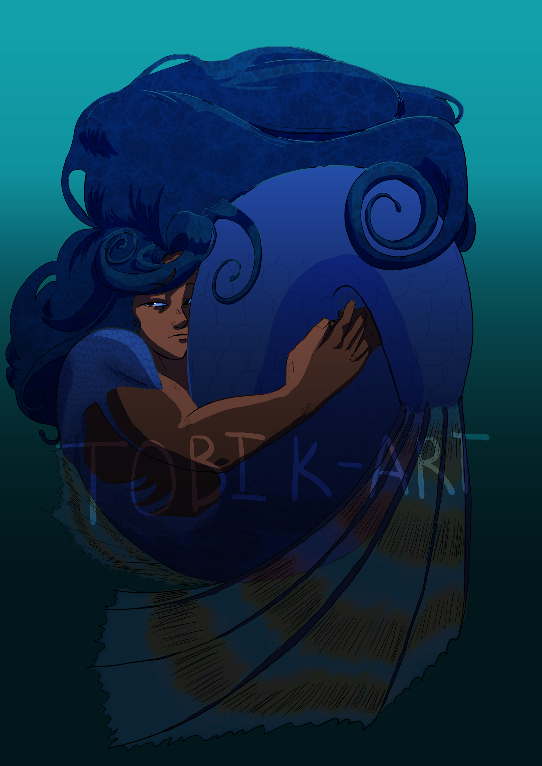 Crocodile and river fish inspired merperson, drawn in Krita. 2021.